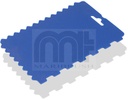 Afstrijkplaatje 80 x 150mm blauw kunststof - 3-kant getand - voor het afstrijken van polyester- en epoxyharsen - 1 kant bloktand 5x5mm - 2 kant punttand 7x7mm - levering uit voorraad binnen 24 uur na order-ontvangst.